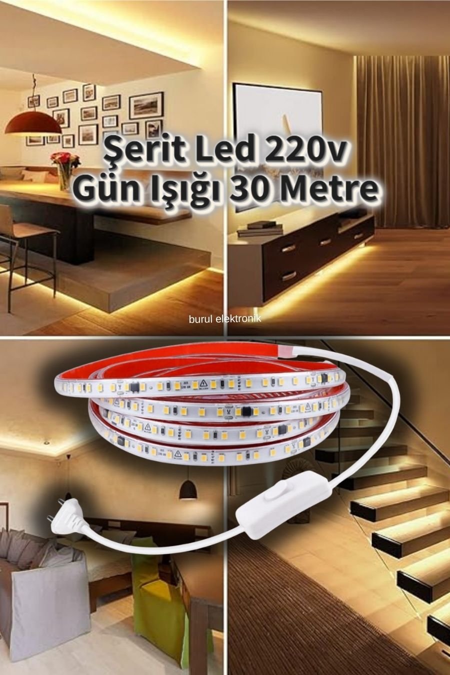 30 Metre Yüksek Lümen Yapışkanlı Silikonlu Fişli Gün Işığı Şerit Led SB-6548